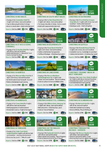 • Visits to Dartmouth & the city of Exeter • Christmas Day Lunch & nightly entertainment