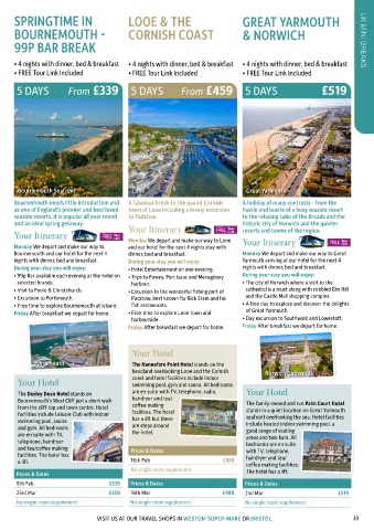 Friday After breakfast we depart for home. • Free time to explore Looe town and of Great Yarmouth.