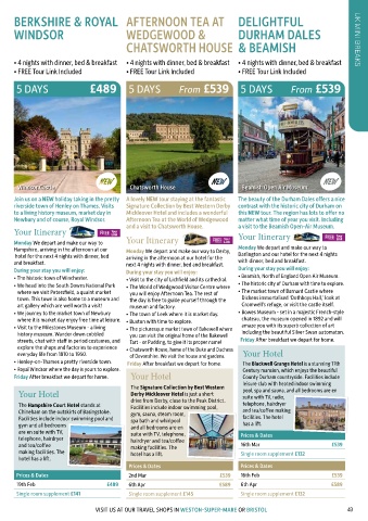 • We head into the South Downs National Park • The World of Wedgwood Visitor Centre where • The historic city of Durham with time to explore.