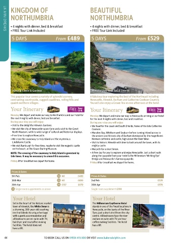Monday We depart and make our way to Northumbria and our hotel for Monday We depart and make our way to Newcastle arriving at our hotel