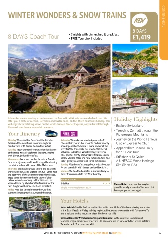 will enjoy breathtaking views on the world-famous Glacier Express, as you travel through • Explore Switzerland