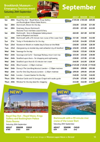 Sat 13th Marlborough, Wiltshire, Avebury Village and stone circle NEW! £35.00 £34.00 £26.50 Sat 20th Dartmouth - ferry to Kingswear taking steam £63.00 £61.00 £47.00