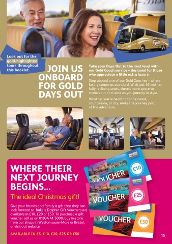 14 To book call us on 01934 41 5000 or visit www.bakersdolphin.com AVAILABLE IN £5, £10, £20, £25 OR £50 15