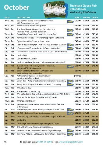 Wed  1st  South Devon Scenic Tour via Newton Abbott    NEW!  £50.00  £49.00  £39.00  Sun  12th Mystery Tour aboard luxury GOLD Coach         £35.00  £34.00  £28.00
