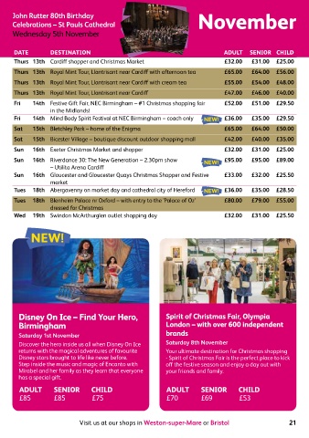 Tues  11th South Devon Scenic Tour via Newton Abbott   NEW!  £55.00  £54.00  £45.00  Saturday 1st November  brands