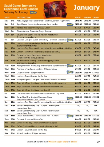 Thurs 11th Plymouth – ideal for shopping and Christmas market  NEW!  £36.00  £35.00  £30.00  Mon  5th  Mystery Tour aboard luxury GOLD Coach  £32.00  £30.00  £25.00