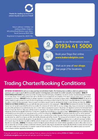IMPORTANT INFORMATION We want you to enjoy your Days Out with Bakers Dolphin. The following simple conditions, which are applicable to all