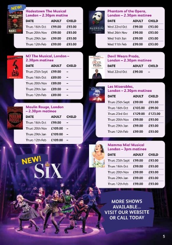 RETURN COACH TRAVEL Starlight Express – 2.30pm MJ The Musical, London – Devil Wears Prada,