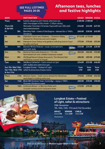 Wed 26th London shopping with Festive afternoon tea £189.00 £189.00 – Tues 16th Littlecote House – a Warners Hotel with NEW! £72.00 £70.00 –