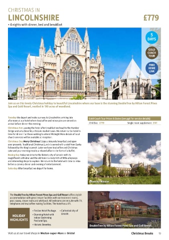Enjoy Christmas in the ancient Kingdom of Northumbria. The hotel festive package provides entertainment and festive treats Join us on this lovely Christmas holiday to beautiful Lincolnshire where our base is the stunning DoubleTree by Hilton Forest Pines