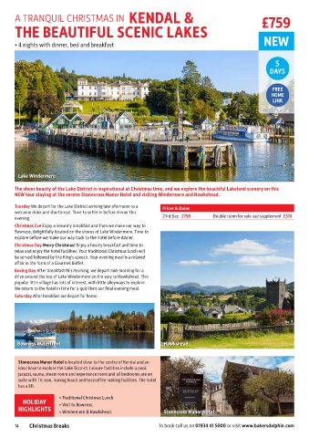 14 Christmas Breaks To book call us on 01934 41 5000 or visit www.bakersdolphin.com Visit us at our travel shops in Weston-super-Mare or Bristol Christmas Breaks 15