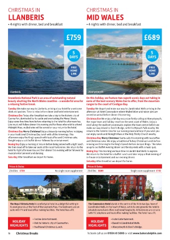HOLIDAY       • Visit to historic city of Caernarfon.   HOLIDAY      • Based in Llandrindod Wells.                     HOLIDAY       • Traditional Christmas Lunch.           HOLIDAY       • Traditional Christmas Lunch.
