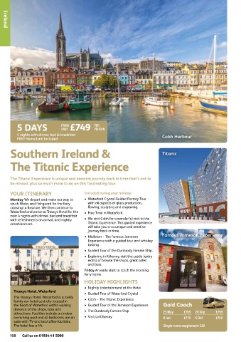 with refreshments on arrival, and nightly • We visit Cobh for a wonderful visit to the