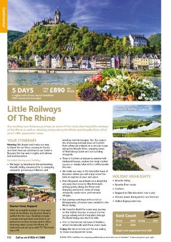 Included during your holiday: • Time in Cochem at leisure to admire half-