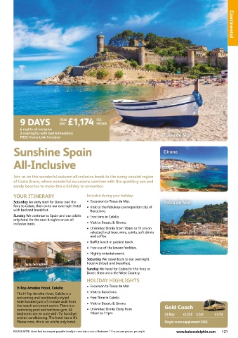 Saturday An early start for Dover and the • Excursion to Tossa de Mar. Tossa de Mar