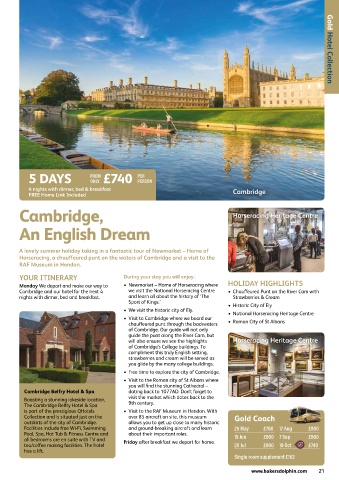 Monday We depart and make our way to   •   Newmarket – Home of Horseracing where   HOLIDAY HIGHLIGHTS