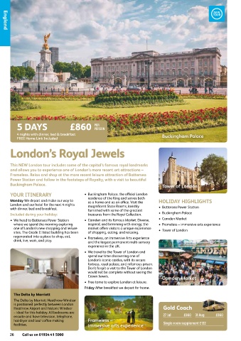 Included during your holiday:         treasures from the Royal Collection.  •   Buckingham Palace