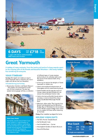 •   Bressingham Gardens and Steam Museum   •   Visit to the traditional seaside town of