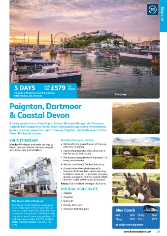 with dinner, bed and breakfast.     •   Visit to Paignton where the afternoon is