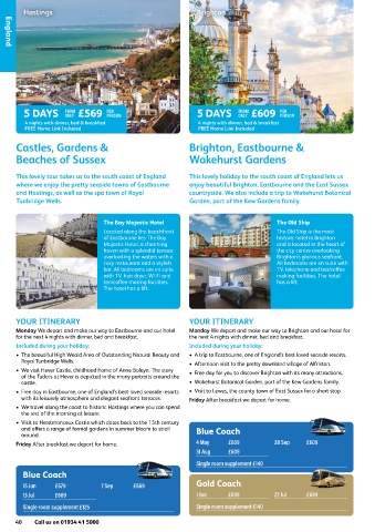 • Free day in Eastbourne, one of England’s best-loved seaside resorts • Visit to Lewes, the county town of East Sussex for a short stop.