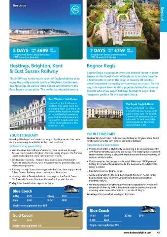 • Eastbourne Free Day – Relax in Eastbourne, one of England’s • Visit to another historic gem – Arundel. With over 1,000 years of