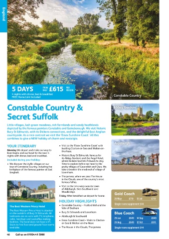 tour of Constable Country, including the pretty villages of Cavendish and Clare. We