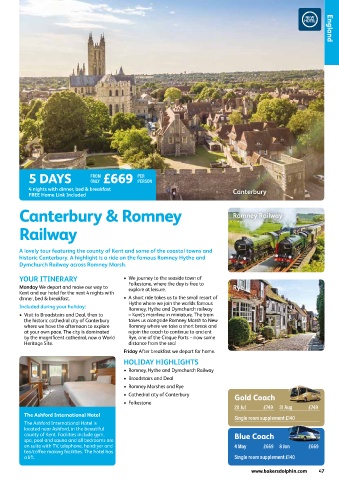 historic Canterbury. A highlight is a ride on the famous Romney Hythe and