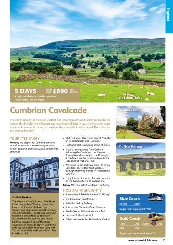 late afternoon for the next 4 nights with • Hadrian’s Wall, stretching some 76 miles. Carlisle Railway