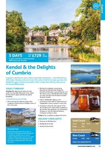 • Ambleside & Kendal 29 Jun £809 19 Oct £799