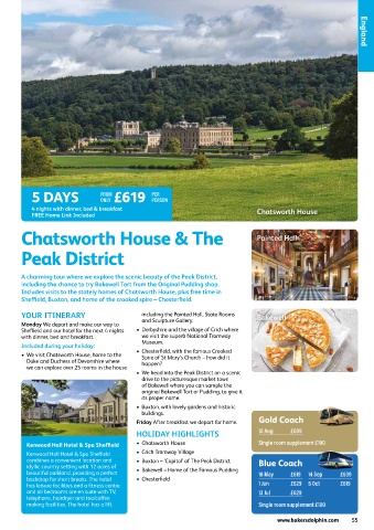 Includes visits to the stately homes of Chatsworth House, plus free time in