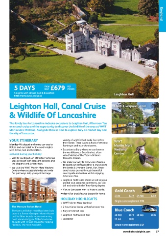 • We visit the WWT Martin Mere Wetland the Leeds & Liverpool Canal. Our 2 hour