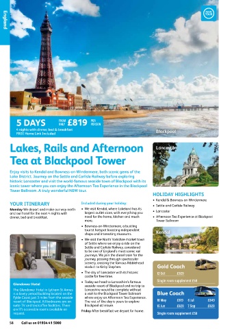 •   Today we head to Lancashire’s famous   Single room supplement £58