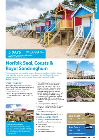YOUR ITINERARY • Visit to Blakeney, famous for its seal Royal Sandringham