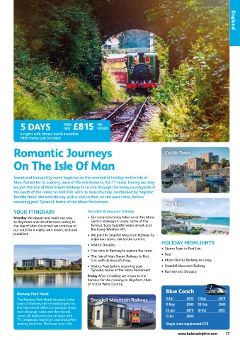 The Ramsey Park Hotel situated in the   Snaefell Mountain Railway        6 Apr      £835  3 Aug    £879