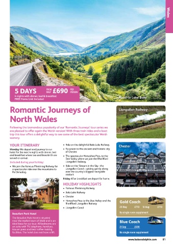 YOUR ITINERARY                      •   Ride on the delightful Bala Lake Railway.  Chester