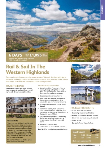 Day One We depart and make our way   •   Scenic tour of the Trossachs – Enjoy a   Falkirk Wheel