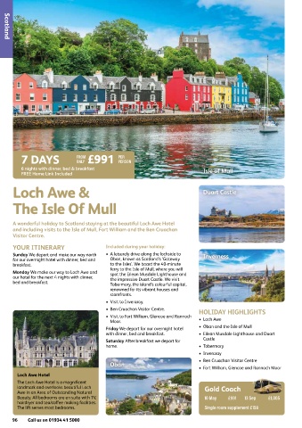 and including visits to the Isle of Mull, Fort William and the Ben Cruachan